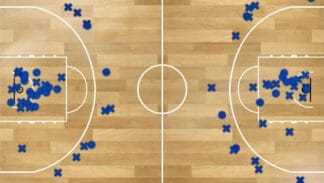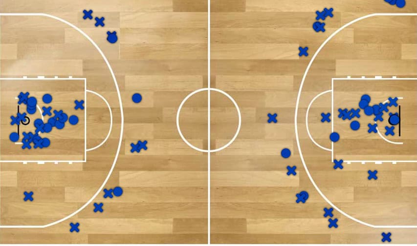 А теперь внимание: 4!!! трёшки за игру от команды. Всего четыре! Не от одного снайпера, а от всей команды.